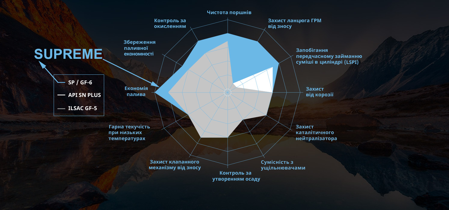 Оливи SUPREME відповідають найновішим вимогам по економії палива і зменшують розхід протягом усього терміну експлуатації